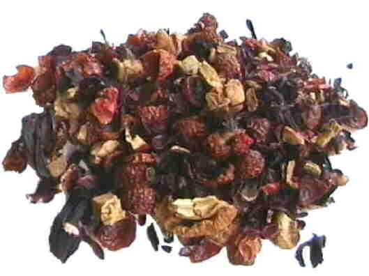 Hibiscusblüten, Apfelstücke, Hagebuttenschalen, Aroma, Erdbeerstücke