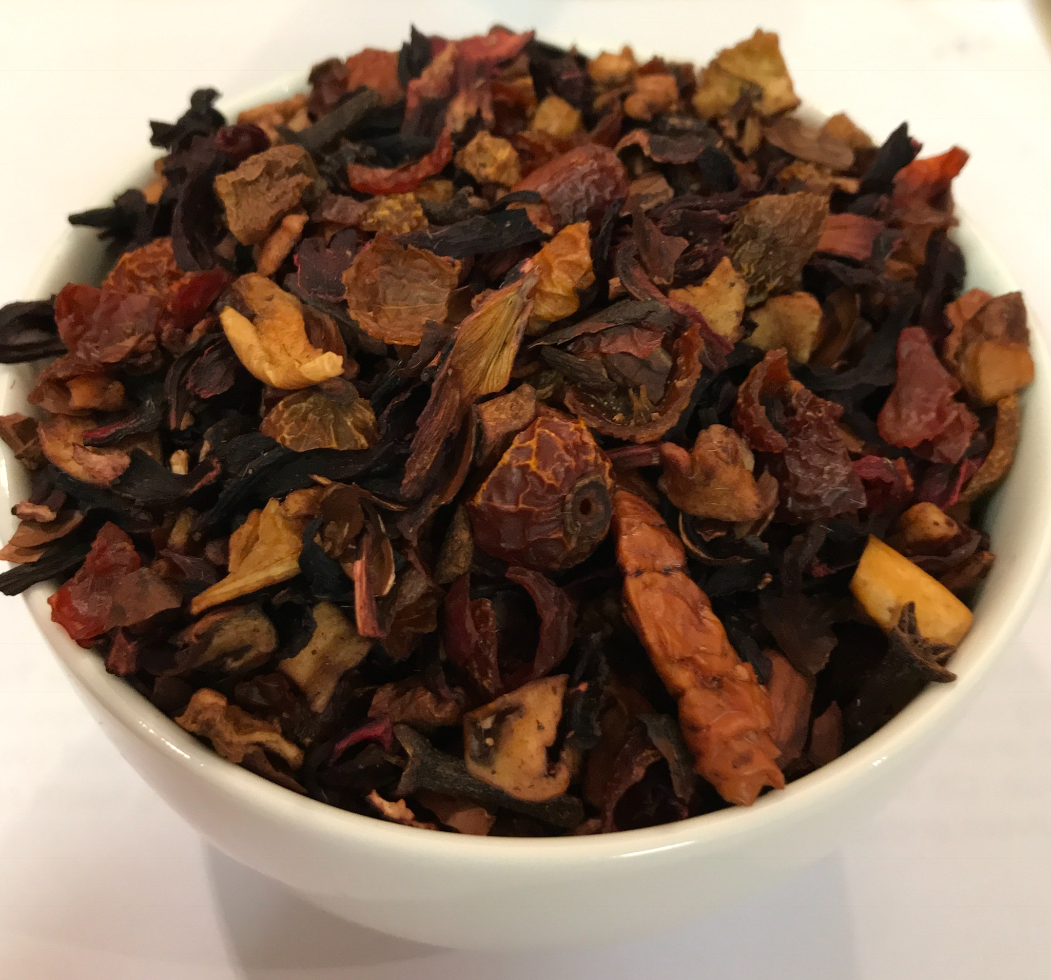 Hagebuttenschalen, Apfelstücke, Kakaoschalen, Zimt, Nelken, Hibiscus, Aroma