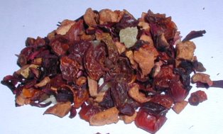 Hibiscus, Hagebuttenschalen, Apfelstücke, Ananasstücke (Ananas, Zucker), Kokos - Chips (Kokosnuß, Kokosfett, Zucker), Aroma.