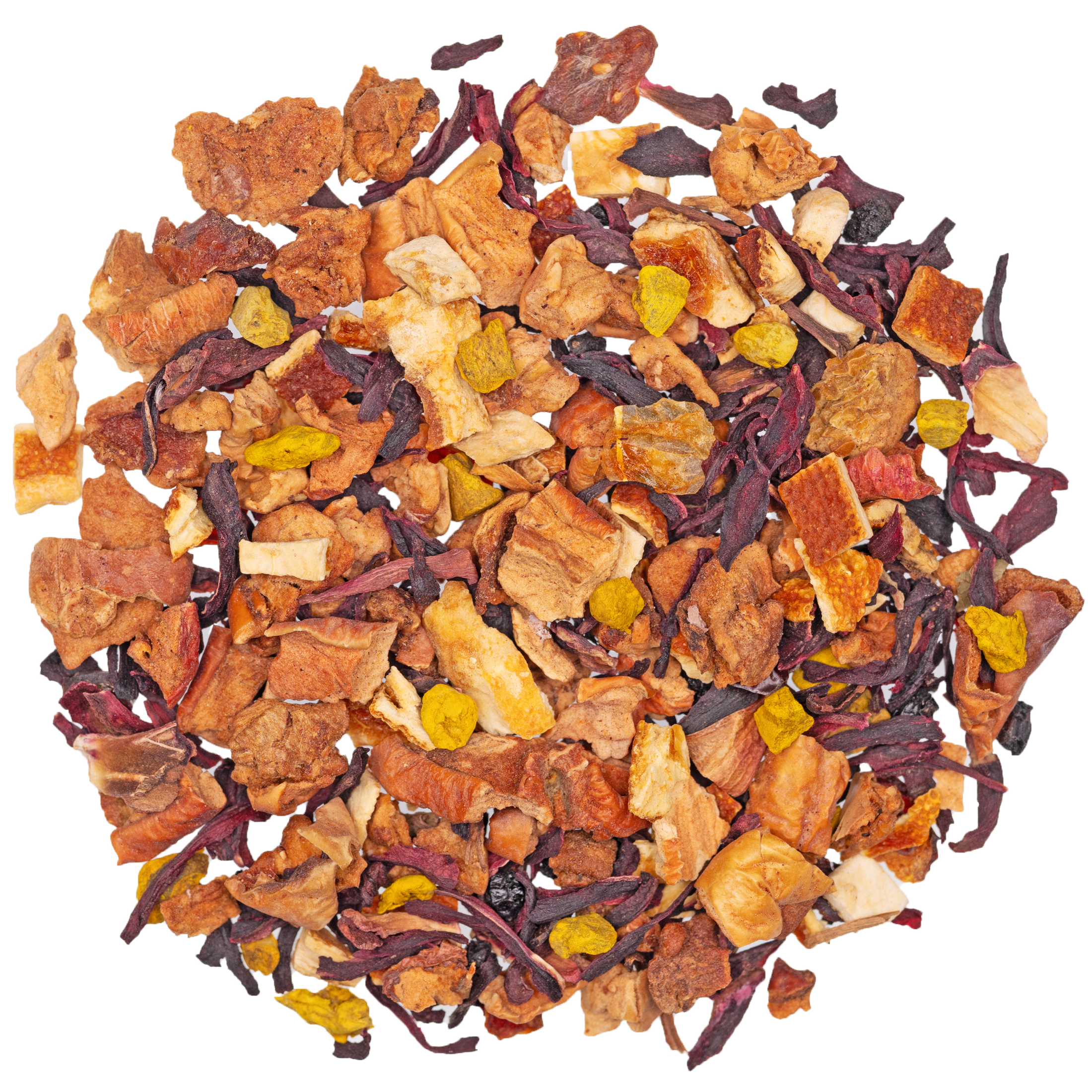 Hibiskusblüten, Apfelstücke, Orangenschalen, Hagebuttenschalen, Grapefruitscheiben(6%), Grapefruitstücke(5,5%), Holunderbeeren, Kurkuma(5%), natürliches A