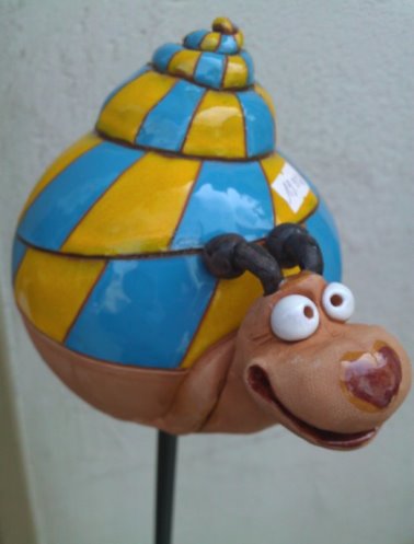 Die Gartenkugeln werden aus Terracottaton handmodelliert und wetterfest glasiert