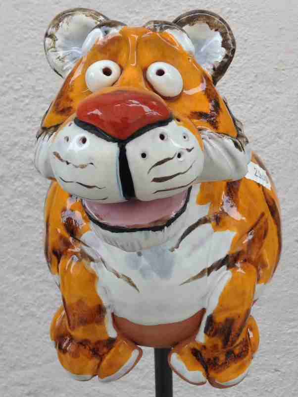 Die Gartenkugeln werden aus Terracottaton handmodelliert und wetterfest gebrannt. Die Größe beträgt ca 17 cm.