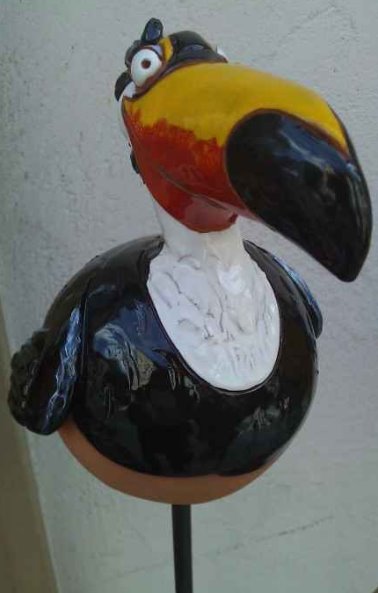 Die Gartenkugeln werden aus Terracottaton handmodelliert und wetterfest glasiert