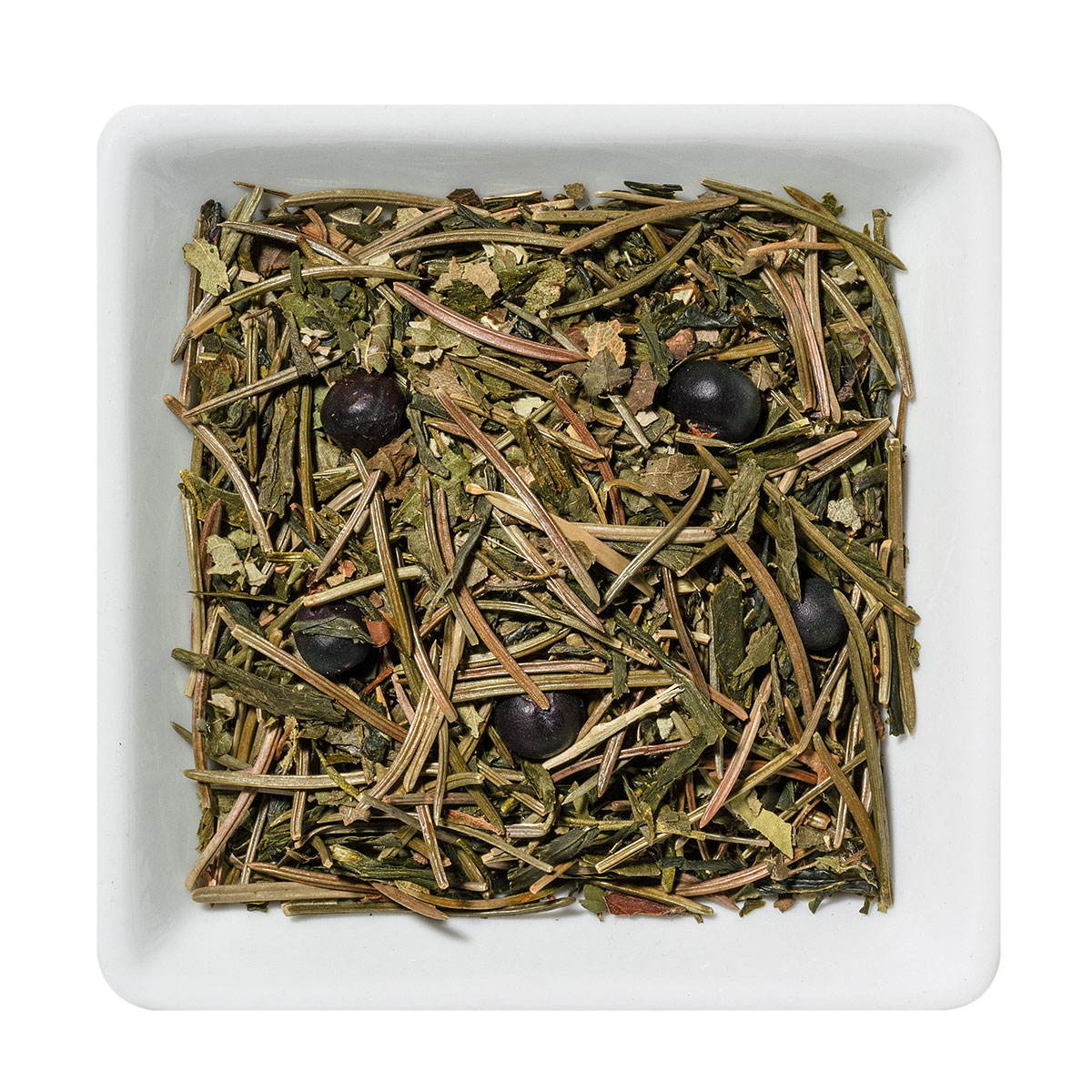 Grüner Tee (45 %), Fichtennadeln, Wacholderbeeren, Brombeerblätter, Birkenblätter (4 %), natürliches Aroma, natürliches Kiefernnadel-Aroma