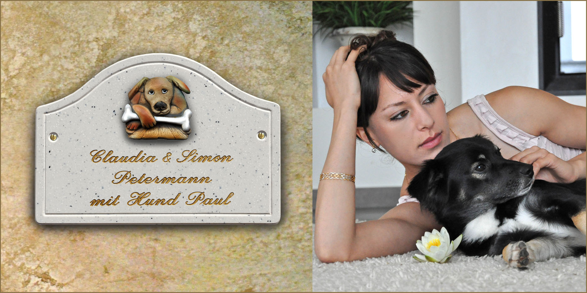 Haustürschild Maison Signée Bogen 23 x 16 cm Hund