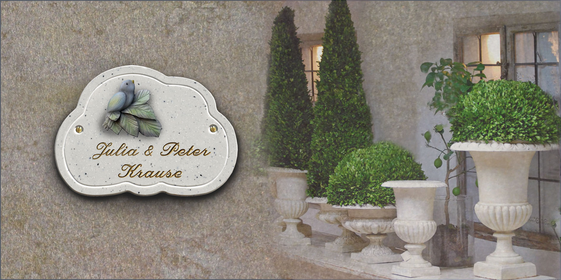 In Marmoroptik und schlichter Eleganz sind diese kleinen Kunstobjekte ein stilvoller Blickfang an Ihrer Haustüre.