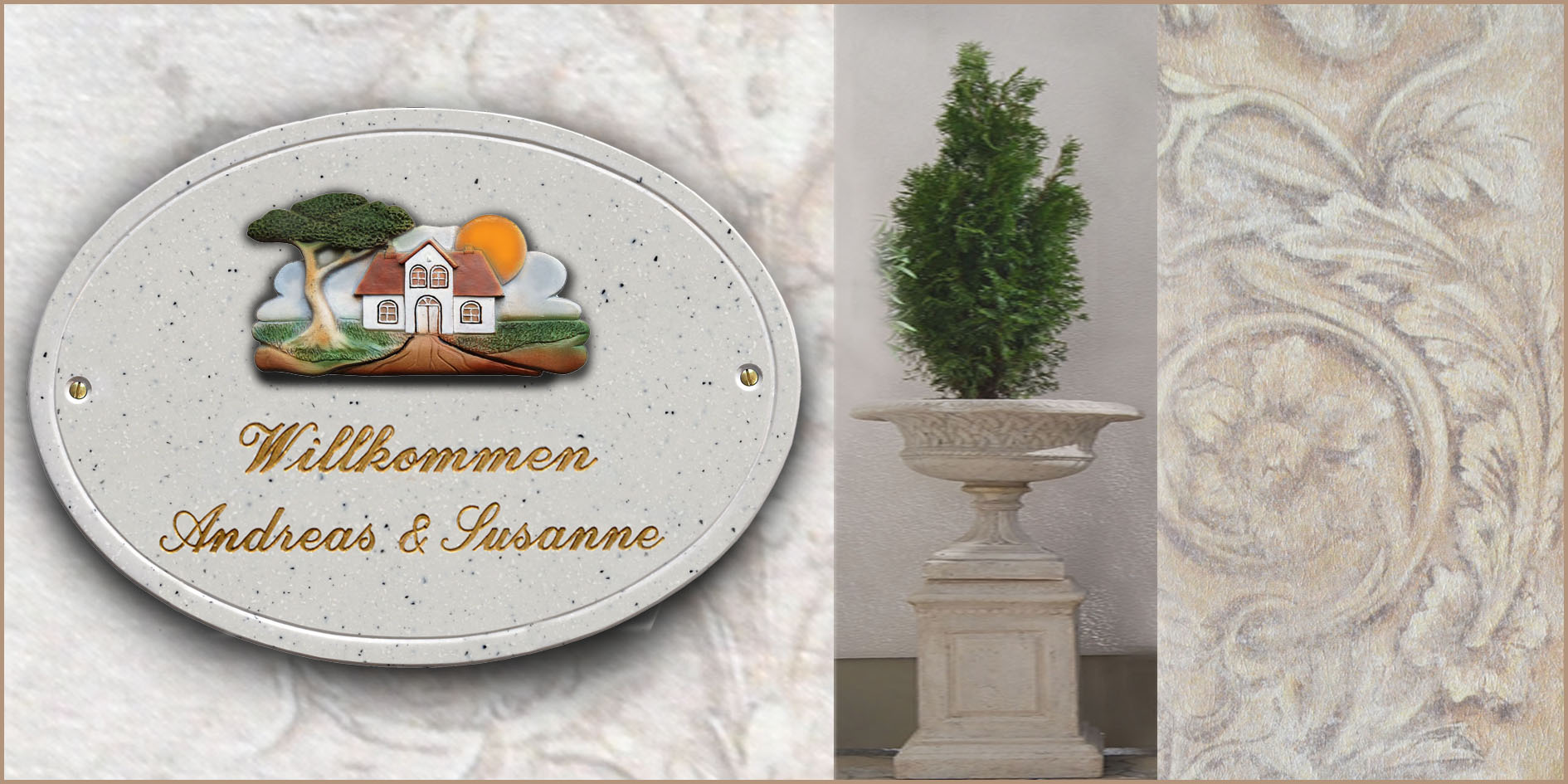 In Marmoroptik und schlichter Eleganz sind diese kleinen Kunstobjekte ein stilvoller Blickfang an Ihrer Haustüre.