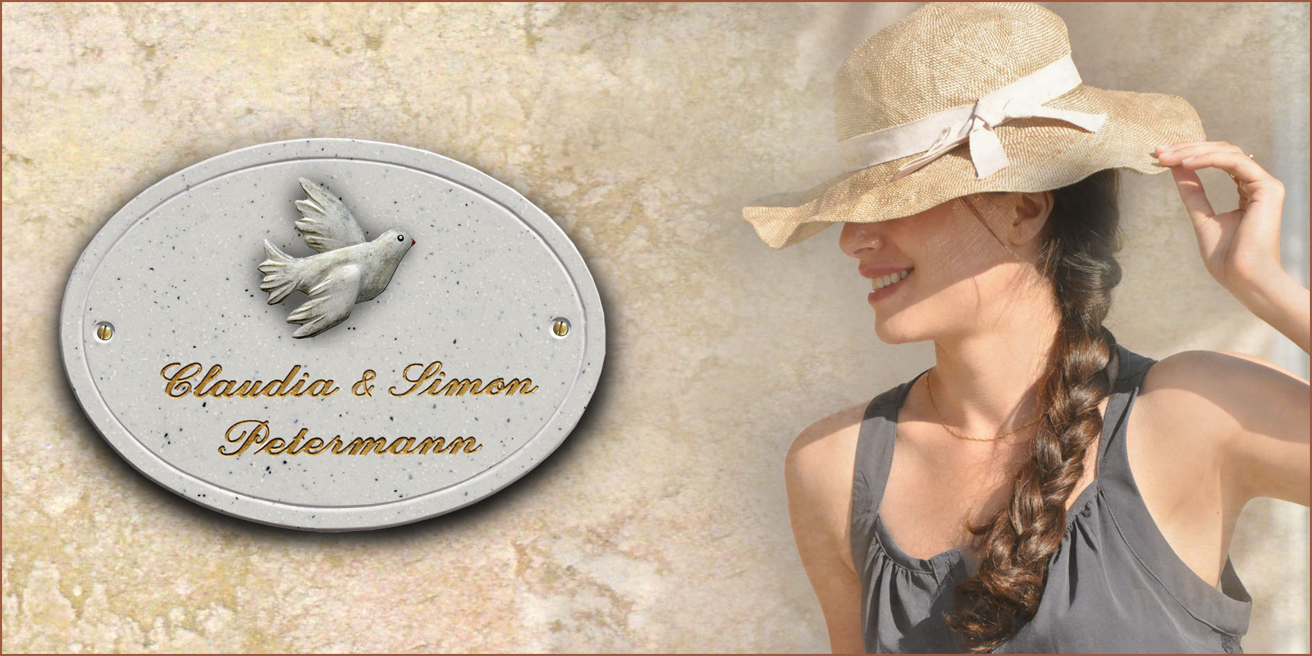 Haustürschild Maison Signée oval 23 x 17 cm Taube