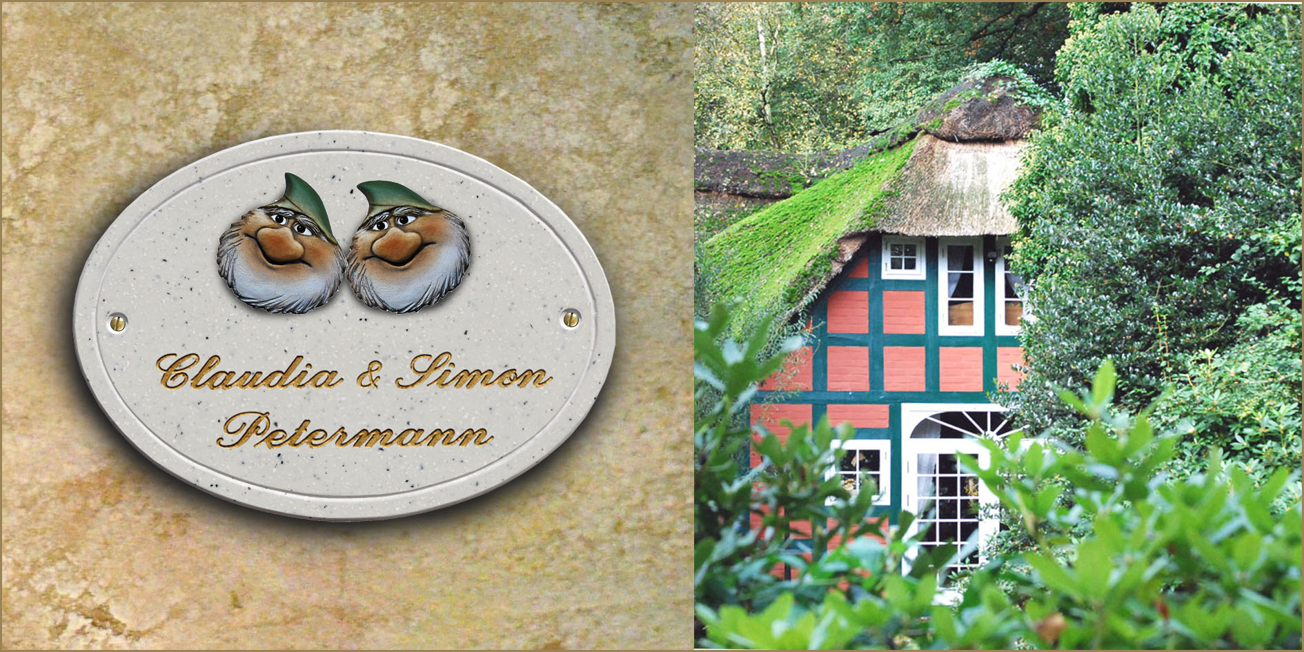 Haustürschild Maison Signée oval 23 x 17 cm Zwerge