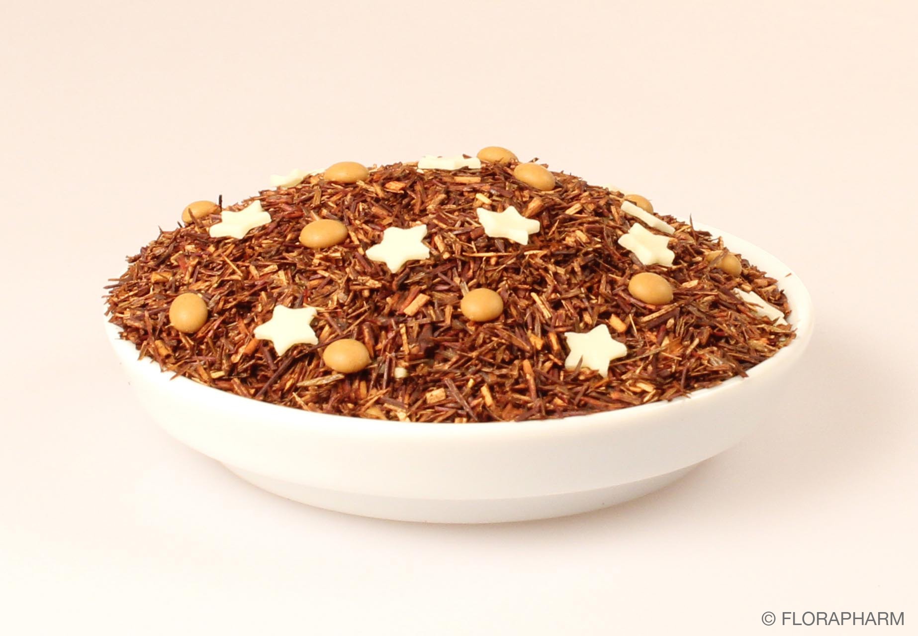 Rooibos, Aroma, weiße Schokoladensternchen (Zucker, Kakaobutter,